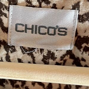 This is so unique and comfy! Note measurements because the tags are missing. This jacket seems to correspond to the Chico's size chart for Large. This measures 23" laid flat at underarms, length is 27". In very good pre-owned condition. Normal wear and tear noted, but no flaws or damage. Please review pictures and feel free to ask any questions or for more pictures prior to purchasing.