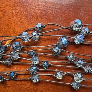 Chico’s Beaded Necklace Gray Blue Long Multi Strand Statement Beads Coastal 43"