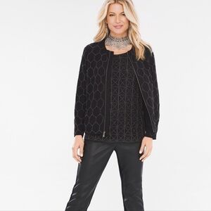 Chico's Beaded Zip Up Bomber Jacket Cardigan Size 1 /Medium