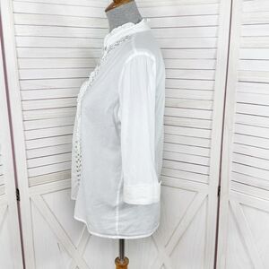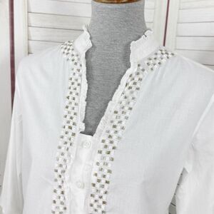 Chicos Beaded Ruffle Trim Button Front Shirt White Small