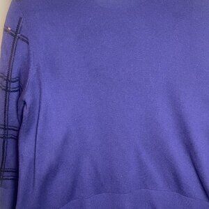 Elevate your wardrobe with this beautiful and elegant purple sequined embellished sweater by Chico’s. In like-new condition, this sweater features 3/4 sleeves- ribbed cuffs, a ribbed bottom band, and subtle side slits for ease of movement and a flattering drape. The delicate sequined embellishments add just the right amount of sparkle, making it perfect for holiday gatherings or festive occasions.