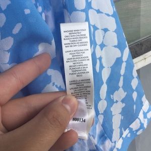 This gorgeous tunic is 100% polyester in front and 100% rayon in the back with two faint, yellow stains in the front torso (featured). Besides that, it is in wonderful condition (only worn once) and is a great option for a summer day! Size 3 (equivalent of XL).