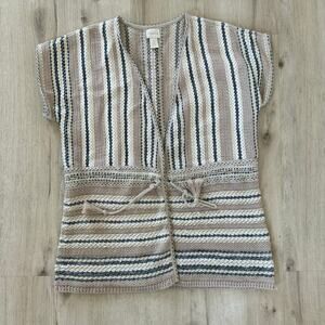 Chico's Beige Striped Open Front Knit Cardigan Sweater Short Sleeve