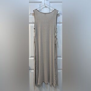Chico's Beige White Striped Side Lacing Midi Tank Dress Size 1 M Stretch Casual