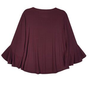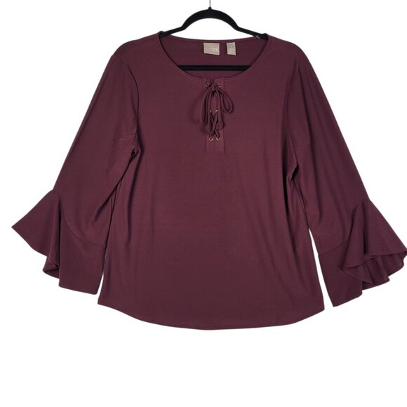 Chicos Bell Sleeve Top Women's Medium (1) Wine Burgundy Lace Front Stretchy