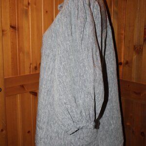 Chico's size 2, this linen blouse is elegant and tailored. Full botton-down, machine washable linen, and 3/4 sleeve with a gathered cuff. 27" long and 24" pit to pit, perfect for a capsule wardrobe.