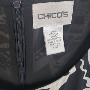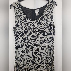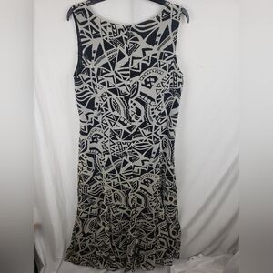 Chico's Black And Taupe Abstract Shapes Sleeveless Maxi 100% Silk Dress Sz L