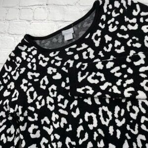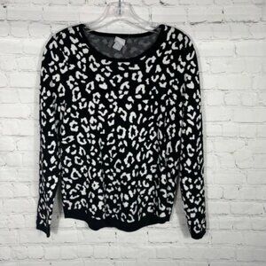 Chico’s Black And White Cheetah Print Long Sleeve Sweater