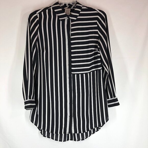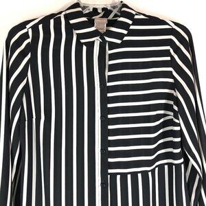 Chico's Black And White Sheer Long Blouse Size 8/10