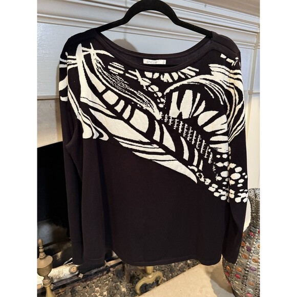 The Chico's Black and White Sweater in size XL or Chicos brand size 2 is a stylish pullover sweater designed for women.