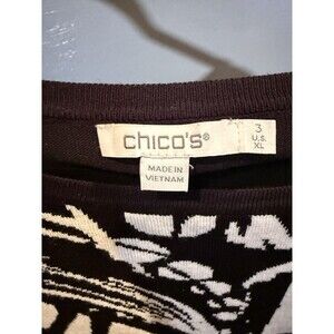 It features a black and white color scheme, making it a versatile and colorful addition to any wardrobe. With its regular size type and comfortable design, this sweater is perfect for everyday wear or dressing up for a more formal occasion. Made by the brand Chico's, known for quality and fashion-forward clothing, this sweater is sure to be a favorite staple in any woman's closet.