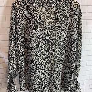 This is a great blouse for work or for date night. This is a size 1, which is Medium. Measures 21" laid flat at underarms, 28-31" at high-low hemline. In very good pre-owned condition. Normal wear and tear noted, but no flaws or damage. Please review pictures and feel free to ask any questions or for more pictures prior to purchasing.