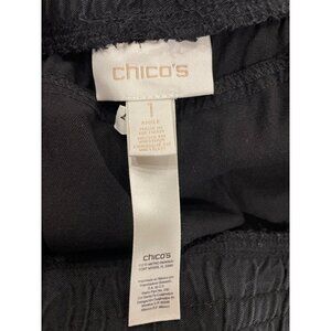 • Chico's pants, black pants, ankle length, stretch pants, zippered pockets, elastic waist, casual wear, women's pants, cotton pants, spandex pants, comfortable pants, pull-on pants, stylish pants