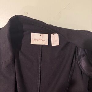 Chico's Black Blazer with Silver Zipper Details, shoulder pads- M