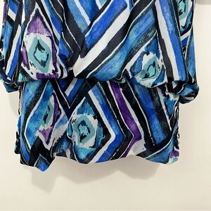 Chicos Black Blue Geometric Print Bianca Short Sleevee Blouse