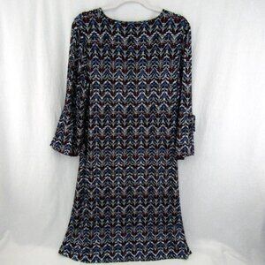 Chicos Black Blue Pink Zig Zag Dress Size M 1 Split Bell Sleeve Knee Length