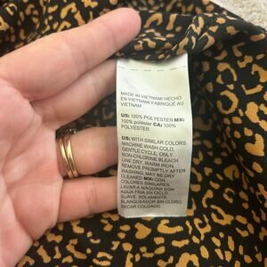 Featuring a chic black and brown animal print, a flattering scoop-neck, and a flowy silhouette, this top is perfect for both casual and dressy occasions. In excellent condition and ready to wear. No flaws. Size 3, designed for a comfortable and flattering fit. Don't miss out on this must-have piece!