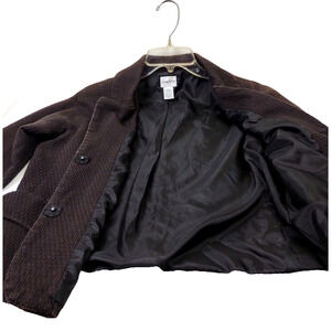 Business Casual Tweed Textured Black Blazer by Chicos is in used, but Great Preowned Condition. No holes stains or rips or defects.