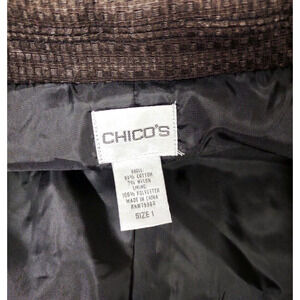 Chicos Black Career Office Blazer Textured Lined w Snap Closure Pockets Size 1 M