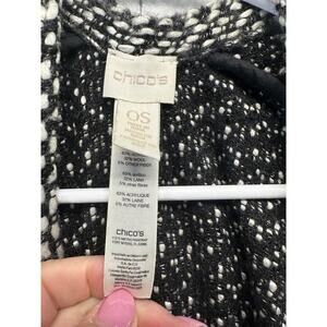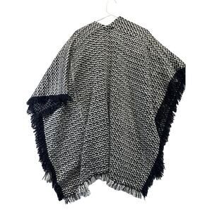 Chico's Black Cream Chunky Knit Cape Front Pockets Wool Blend One Size EUC