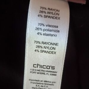 Discover the elegance of Chico's black cropped ankle pants, designed with a sleek tapered fit that flatters any silhouette. These pants are crafted from a comfortable, stretchy fabric, ensuring ease of movement and a polished look. Perfect for both casual outings and more formal occasions, they are a versatile addition to any wardrobe.