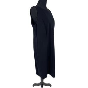 Chico's brand "little black dress". Tank style with an a three finger width for the straps. Length hits just above the knee depending on height obviously. Has a zipper up the back for closure. Darts at the chest and waist for a form fit. Made of 70% Rayon 25%. Nylon 5% Spandex. Has a good amount of stretch to it. No fading, in great condition.