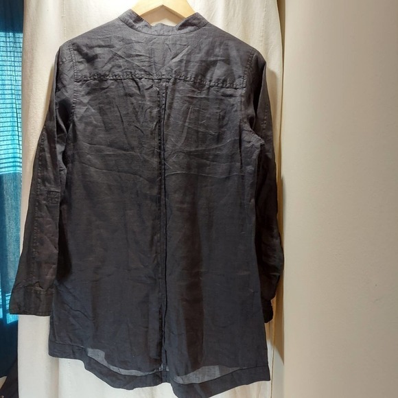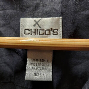 Wear as a long shirt or a short dress, this Chico's will fit the bill. Black, Size 1, 100% Ramie. Machine washabe. The sleeve tab buttons are missing. No visible rips or stains. Smoke and pet-free environment. Offers considered.