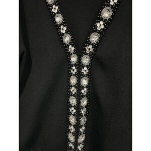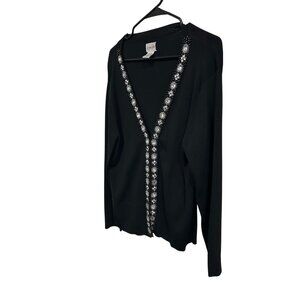 Chicos Black Embellished Cardigan Sweater Floral Rhinestone Long Sleeve Sz L