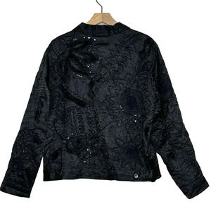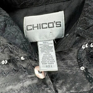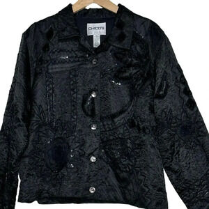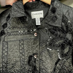 Chico's Black Embellished Jacket Silk Beads Velvet Button Down Abstract Sz 2/M