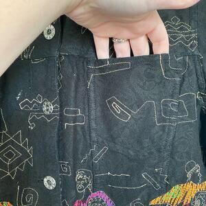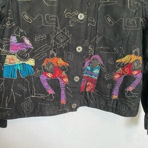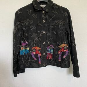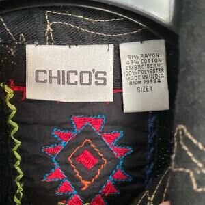 Chico’s Black Embroidered Jacket African Tribal Art to Wear 1 Medium