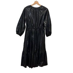 Chico's Black Faux Leather 3/4 Sleeve Pleather Tiered Midi Dress Women's Size 4