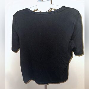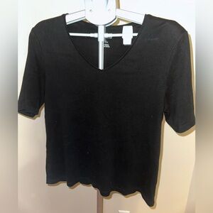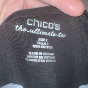 This chic black t-shirt from Chico's features a fitted design with short sleeves, perfect for a sleek and modern look. Crafted from a comfortable fabric, it offers a minimalist style that pairs effortlessly with any outfit.