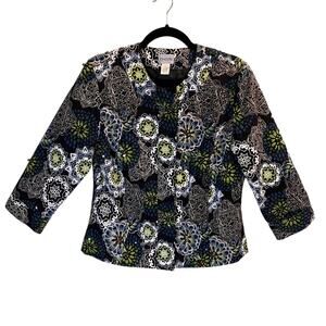 Chico's Womens Black Floral Button Front Jackets Size Small 100% Cotton