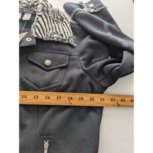 Chico's Black Fur Trim Knit Jacket Button Front Mob Wife Size 2 Womens L Pockets
