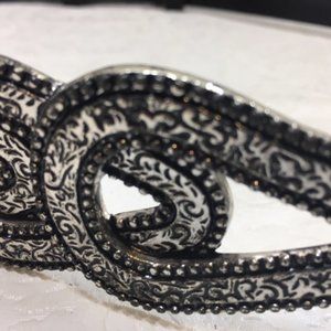 Gorgeous Silver Tone Interlock 6 Teardrop Designed Belt Buckle, Metal engravings embossed in black to highlight designs