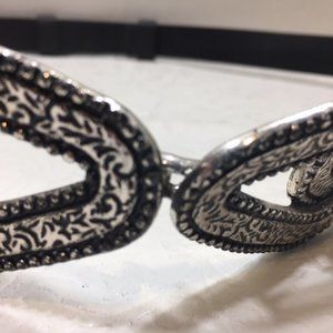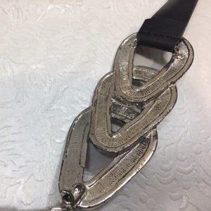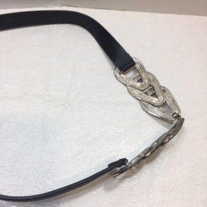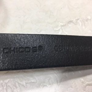 Chico's Black Genuine Leather Fashion Adjustable Silver Buckle Belt Size S/M