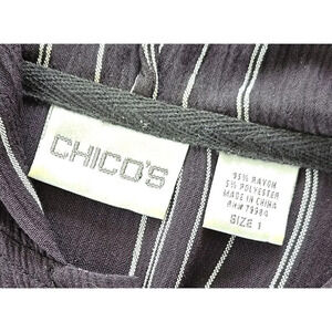 Chico’s Black Geometric Striped Hoodie Button Up Top Blouse Size 1 Or 8 US