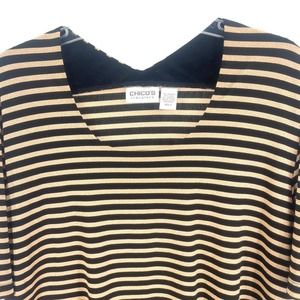 Chico’s Black Gold Shimmer Striped Scoop Front V Back Top Size 3, US 16/X-Large