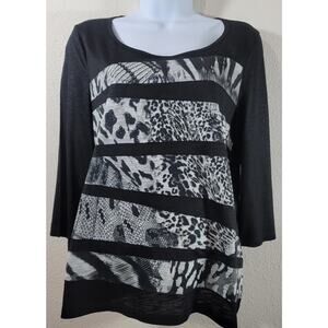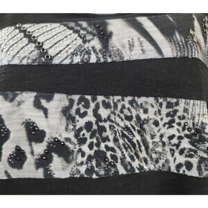 Chico's Black Gray Animal Print Beading Top 1 Medium New Without Tags Soft