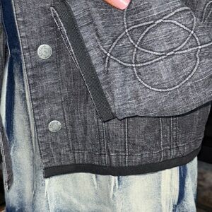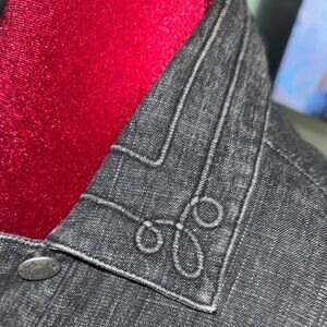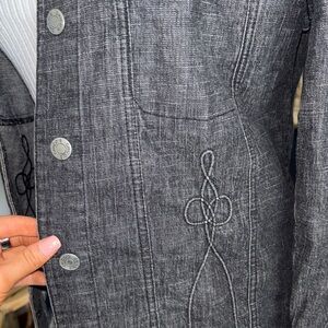 This chic black jean jacket from Chico's offers a timeless cropped design, perfect for layering. Its classic denim styling and versatile color make it an essential addition to any wardrobe.
