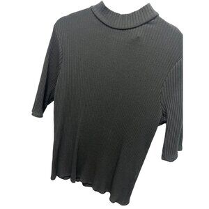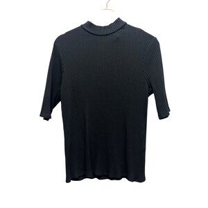Chico's Black Label Black Ribbed Short Sleeve Gold Back Zipper Mock Neck Top