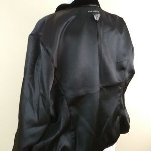 Black Label by Chico's elegant and unique deep dark blue wool jacket with black velveteen appliques