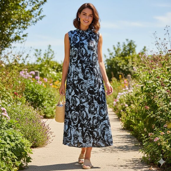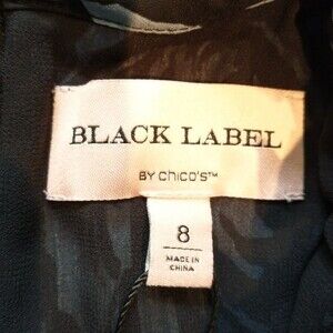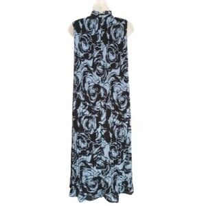 Chico's Black Label Crinkle Floral High Neck Sleeveless Dress Size 8 Black Blue