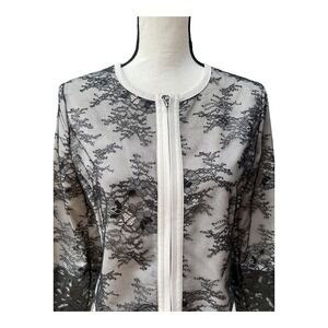 Chico's Black Label Crop Evening Jacket Floral Lace Faux Leather Cutout Sz Small