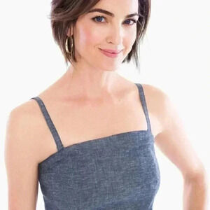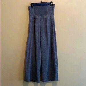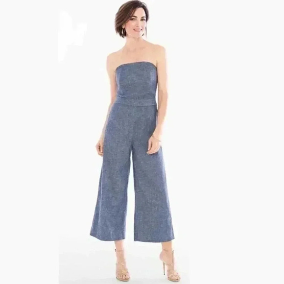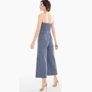 Amazing woven twill (chambray like) strapless wide leg jumpsuit by Chico's black label.