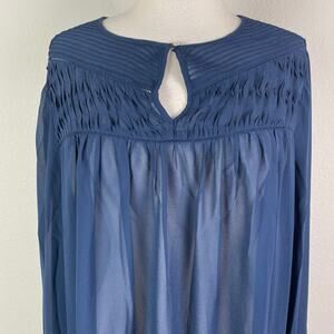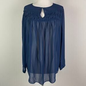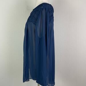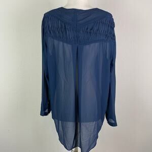 Chico's Black Label Navy Sheer Pintuck Long Sleeve Top 2