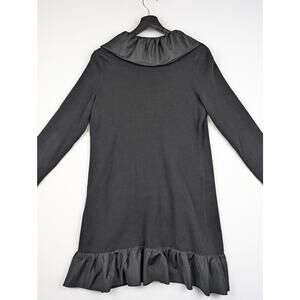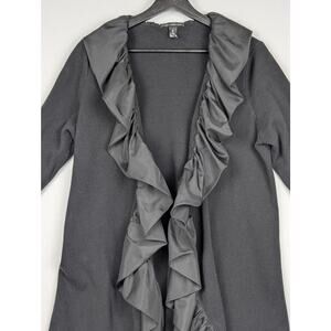 Chico's Black Label Ruffle Trim Long Duster Cardigan Jacket Size 2 Black