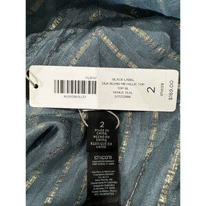 Chicos Black Label Silk Blend Metallic Stripe Top Size 2