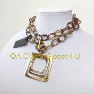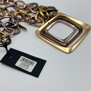 Chico's Black Label Tri-color Geometric Square 2 in 1 Chain Link Necklace