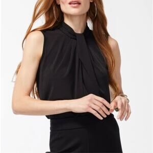 Chico’s Black Label Twist Neck Top – Matte Jersey Elegance (S) Sleek, sculptural, and effortlessly chic—this twist neck top from Chico’s exclusive Black Label collection is a modern wardrobe essential. Crafted from soft matte jersey, it drapes beautifully with a flattering A-line silhouette that transitions seamlessly from day to night.